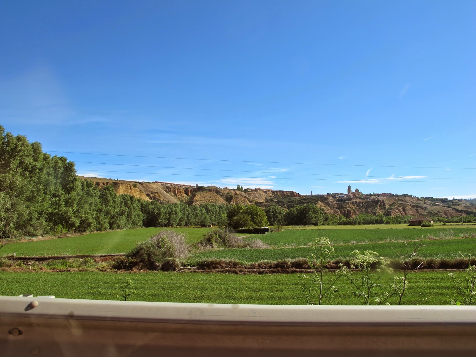 But first, of course, we had to get there. It's about a four and a half drive to Salamanca from our area, and you go through some gorgeous scenery, leaving the stone walls and red tile roofs and the terraced vineyards of this area and encountering rose and ochre brick and stone walls of the villages nearer Salamanca and vineyards in rocky flat soil—soil that the vines seem to like: We've been told the harsher the soil, the better the wine.