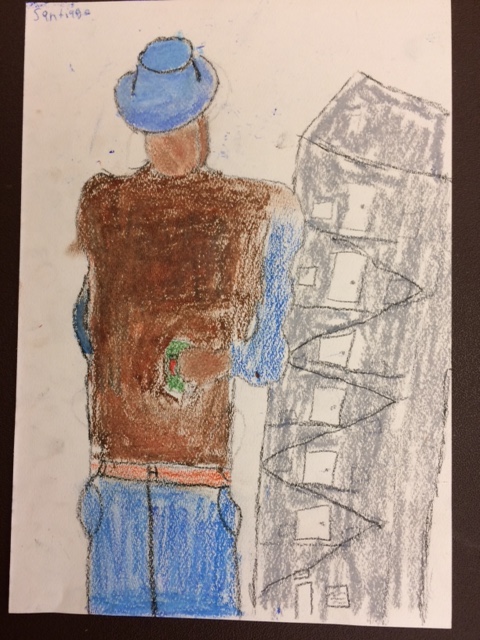 The students used colored pencils to sketch in their portraits on pastel paper, then did the major coloring with oil pastels. Here is a nice sample of their work: