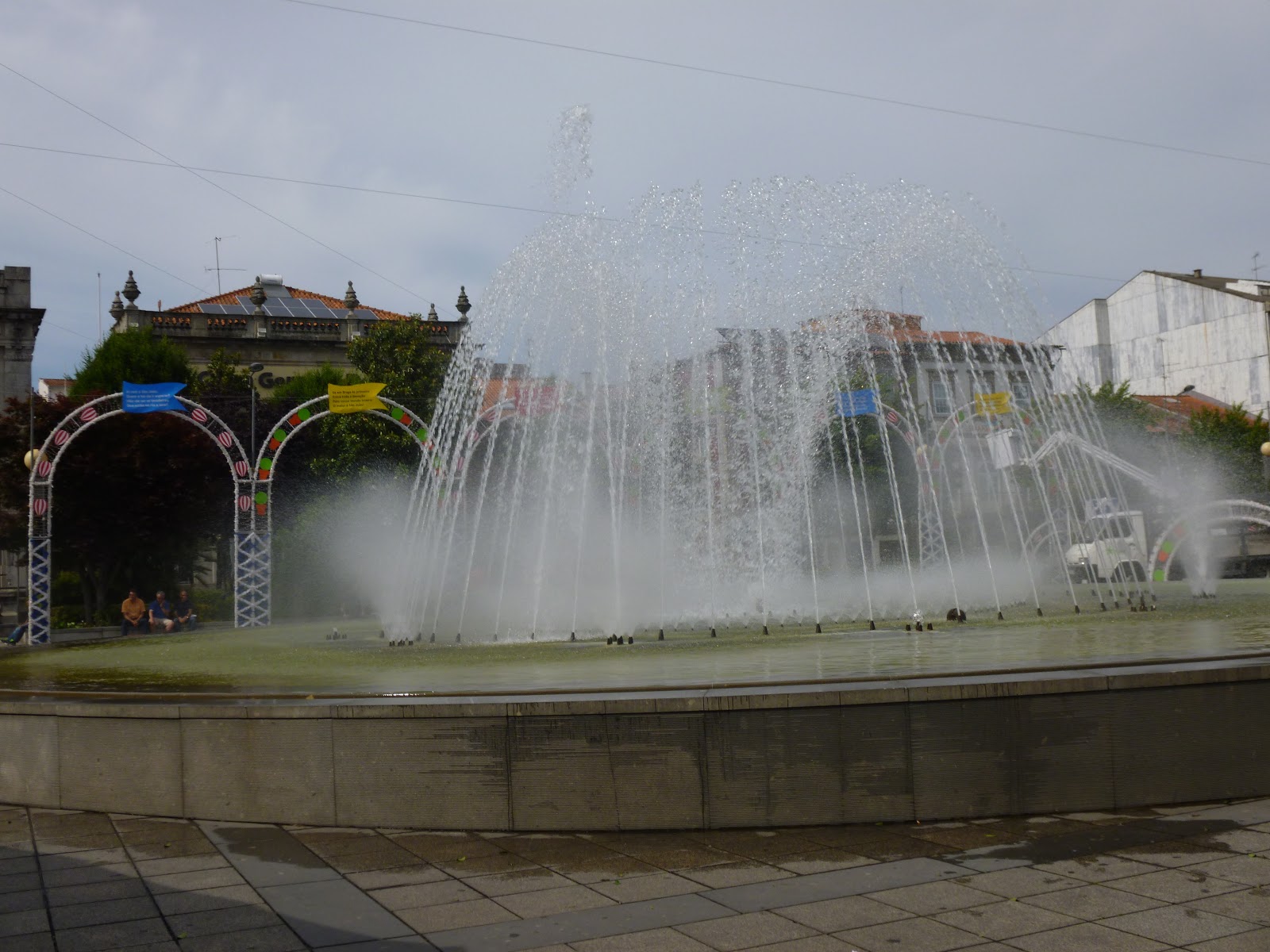 Praça República is a landmark that ends in an arcade (at left) with restaurants, including the Café Vianna, which has been another landmark since the 1800s and used to be frequented by writers like Eça de Queirós and Camilo Castelo Branco. Outside tables are near the enormous fountain that has water jets, lit at night. And Café Vianna, for us, has become a meeting place of sorts for connecting with many of the nice friends we've made in Braga.